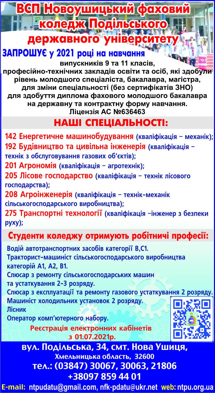 Для працівників Відокремленого структурного підрозділу «Новоушицький фаховий коледж Закладу вищої освіти